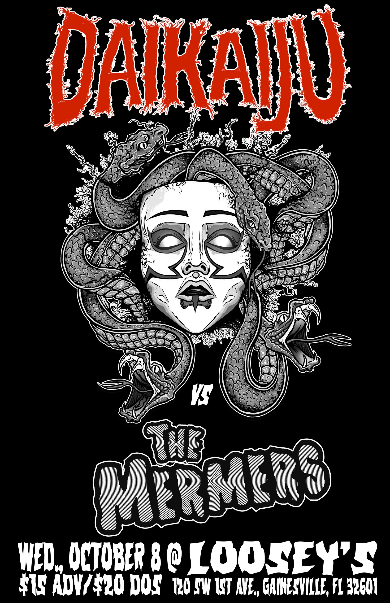 DAIKAIJU RETURNS TO ATTACK LOOSEY’S DOWNTOWN IN GAINESVILLE, FL ON WEDNESDAY, OCTOBER 8TH!!! DAIKAIJU VS. THE MERMERS-ROUND 4!!! TICKETS ON SALE NOW-GO!!!